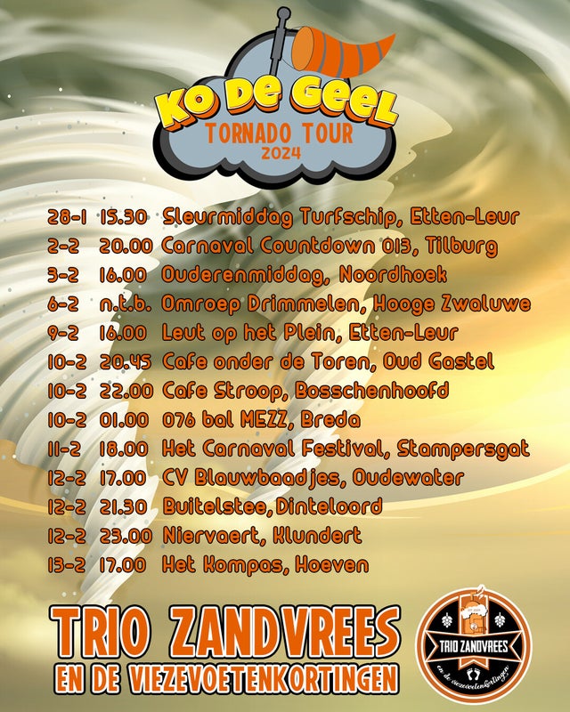 De enige echte KO DE GEEL TORNADO TOUR start vandaag! 💨🌨🌩☀️